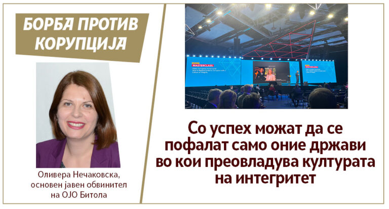 Нечаковска: Со успех можат да се пофалат само оние држави во кои преовладува културата на интегритет