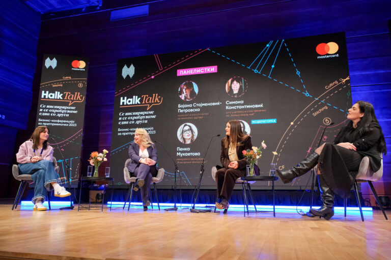 На настанот што се одржа во Македонската филхармонија, на сцената говореа искусни претприемачки клиенти на Халкбанк, како и Агњешка Шпионек, специјалната говорничка од Mastercard Advisors „HalkTalk 2023“, конференцијата организирана од