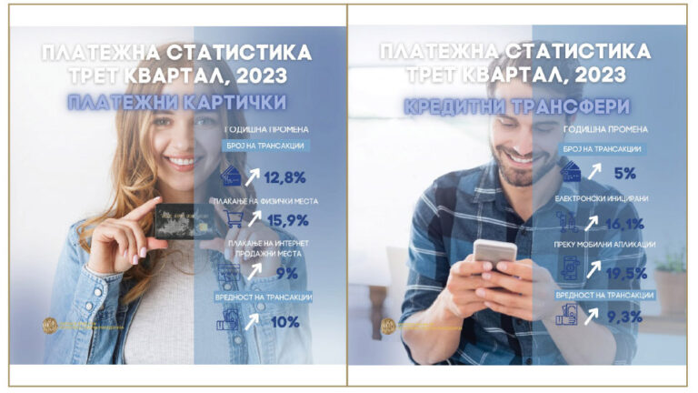Народната банка на Република Северна Македонија ги објави податоците од доменот на платежната статистика за третиот квартал од 2023 година. Податоците покажуваат дека и во третиот квартал од 2023 година
