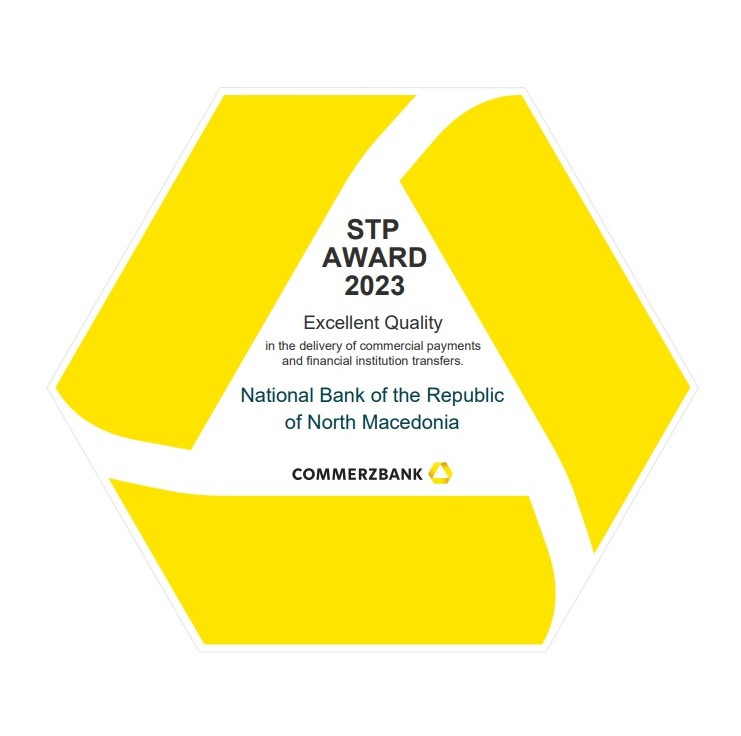 Народната банка по вторпат е добитничка на наградата на „Комерцбанк“, којашто претставува една од водечките меѓународни деловни банки во Европа. Наградата се доделува за 2023 година, за квалитетно автоматизирано извршување