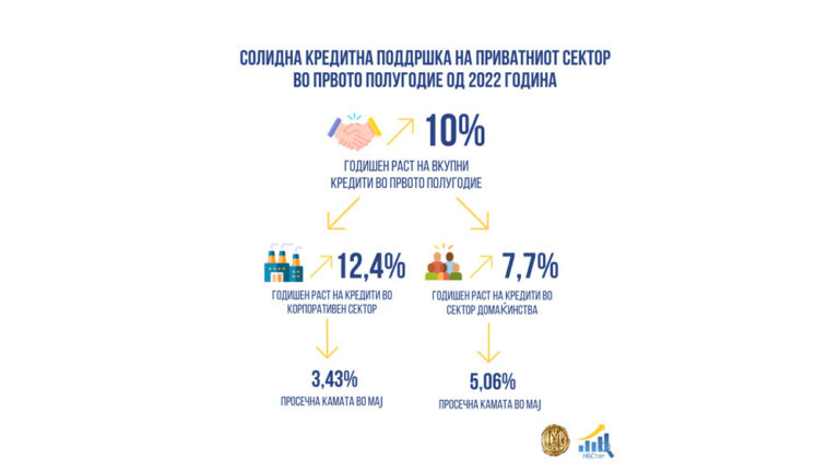 Солидна кредитна поддршка на приватниот сектор во првото полугодие, особено на корпоративниот сектор