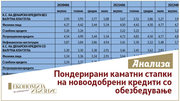Пондерирани каматни стапки на новоодобрени кредити со обезбедување