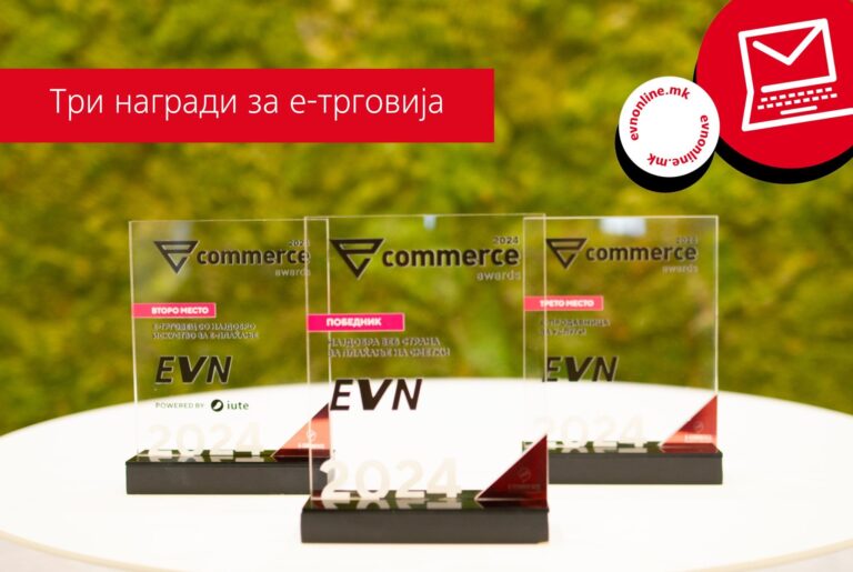 ЕВН Македонија на овогодинешното доделување на награди за е-трговија освои три награди за корисничкиот портал ЕВН онлајн.​ ЕВН го освои првото место во категоријата „Најдобра веб страна за плаќање на