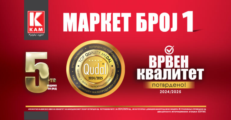 КАМ петта година по ред е прогласен за маркет чии производи се со најдобар квалитет во Македонија