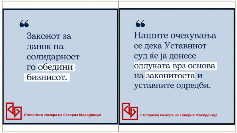 Стопанската комора ја поднесе Иницијативата за поведување на постапка за оценување на уставноста на Законот за данок за солидарност пред Уставниот суд на РС Македонија