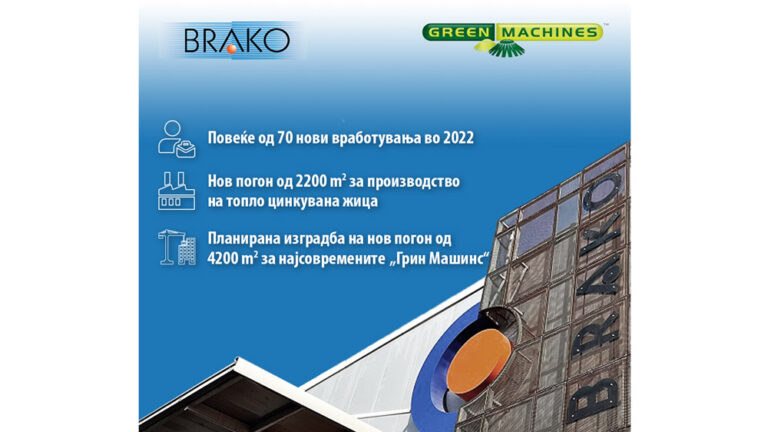 Новите проекти и инвестиции во „Брако“ ја продолжуваат тенденцијата на отворање нови работни места и тоа во услови на дестабилизирани економски текови во светски рамки. Од почетокот на годинава до