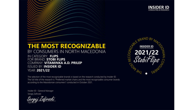Стоби флипс во категорија флипсови и Брилијант во категорија сончогледово масло се најпознатите брендови меѓу македонските потрошувачи во годинешното истражување „Најпознати брендови според потрошувачите 2021-ва”. Според истражувањето Стоби флипс на