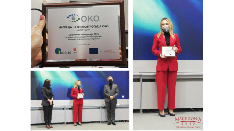 Денеска се одржа свеченото доделување на наградите ОКО за 2019 и 2020 година, во која прилика Македонија 2025 е добитник на Наградата за филантропија ОКО за 2019 година во категоријата