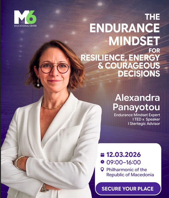 На 12 март 2026 година (четврток), во малата сала на Македонската филхармонија, М6 Едукативен Центар организира ексклузивен тренинг и настан со меѓународно признатата експертка за лидерство, TEDx говорник и стратегиски