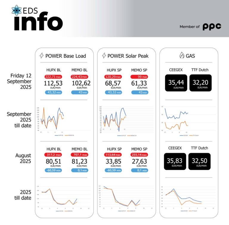 ЕДС Инфо поинт: Просечната цена на струјата на HUPX берзата за петок 12.09.2025 изнесува 112,53 евра за мегават час, на МЕМО 102,62 евра за мегават час