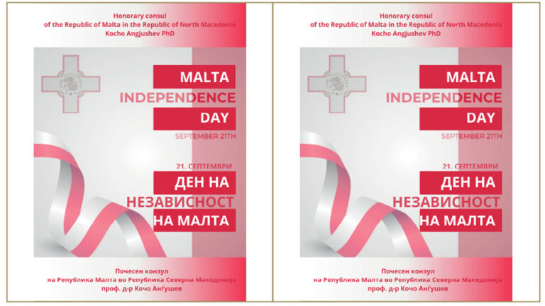 Почесниот конзул на Малта во Северна Македонија, проф. д-р Кочо Анѓушев, го честита Денот на независноста на Малта, која годинава одбележува 59 години независност од Обединетото Кралство, стекната во 1964
