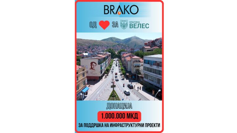 Велешката компанија БРАКО помогна со финансиска помош од 1 милион денари за побрзо спроведување на проектите на територија на општина Велес. Општината ја искористи донацијата за побрзо и поефикасно да