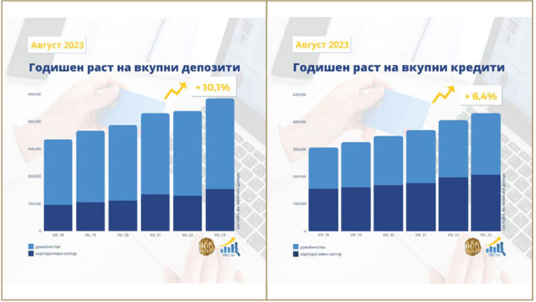 НБ: Годишен раст од 10,1% на вкупните депозити и од 6,4% на вкупната кредитна поддршка во август