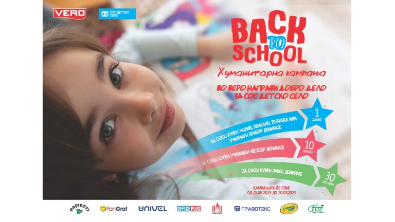 Во пресрет на новата учебна година и зголемениот обем на продажба на училишен прибор, „Веро“ заедно со своите партнери и добавувачи почнува хуманитарна донаторска кампања наменета за децата поддржани од