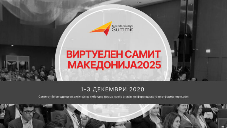 Деветотоиздание на Самитот Македонија2025, за првпат ќе се одржи во хибридна/ дигитална форма од 1-ви до 3-ти декември 2020 година (15:30 – 17:30 ч.) преку онлајн конференциската платформаhopin.com. Самитот Македонија2025