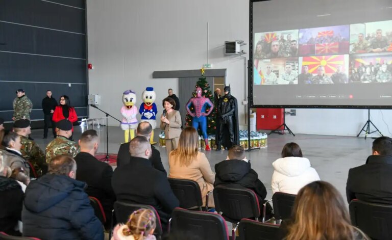 Претседателката и врховен командант на Армијата, Гордана Сиљановска-Давкова, министерот за одбрана Владо Мисајловски и началникот на Генералштабот, генерал-мајор Сашко Лафчиски, денеска во касарната „Страшо Пинџур“ во Петровец преку видео-конференциска врска