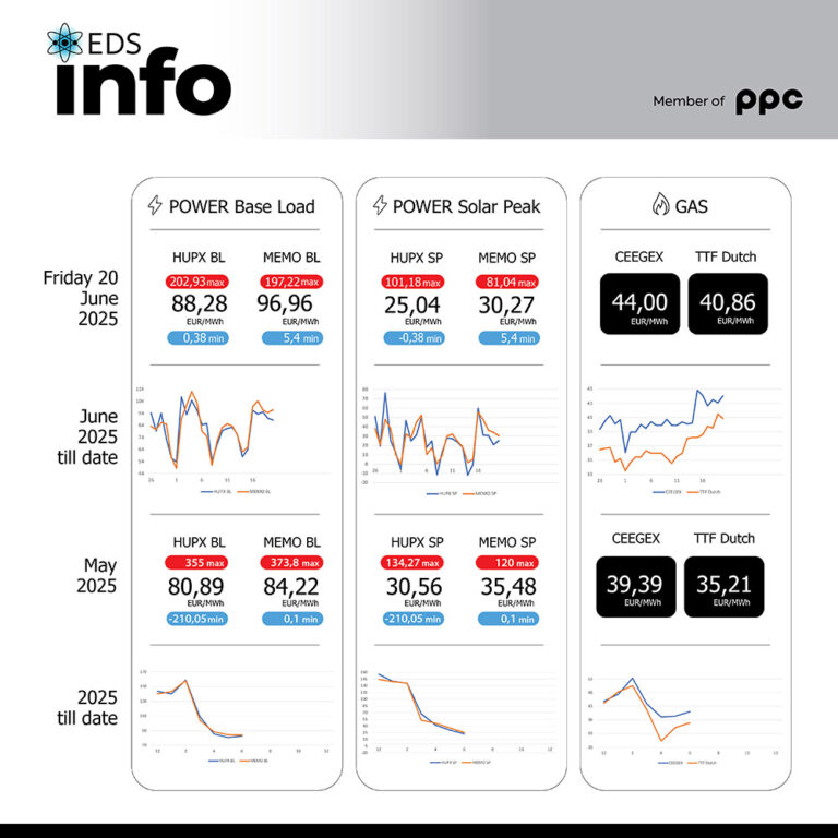 ЕДС Инфо поинт: Просечната цена на струјата на HUPX берзата за петок 20.06.2025 изнесува 88,28 евра за мегават час, на МЕМО 96,96 евра за мегават час