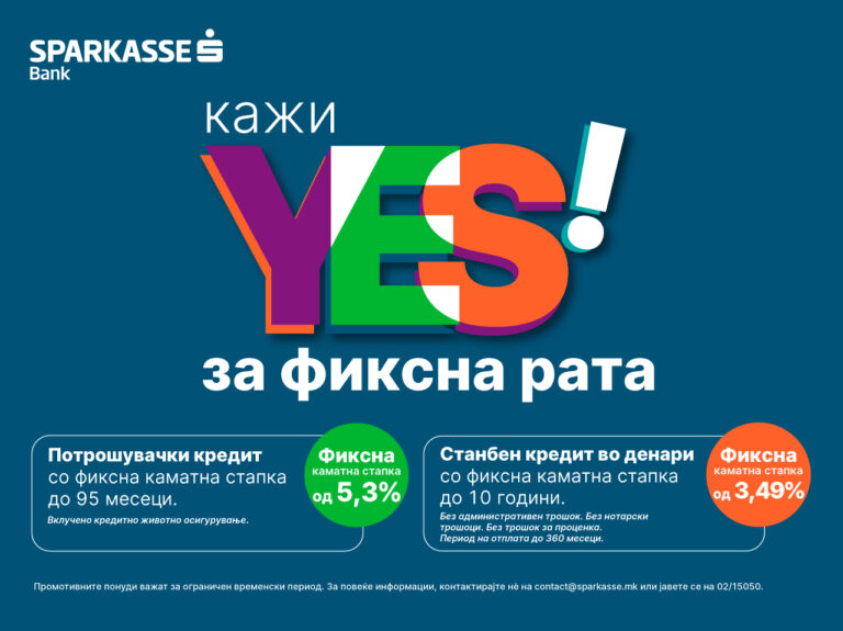 „Кажи YES за фиксна рата, нова примамлива понуда од Шпаркасе Банка“