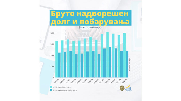 Статистичко соопштение за позначајните промени кај надворешниот долг, надворешните побарувања и меѓународната инвестициска позиција На крајот на март од 2022 година, бруто надворешниот долг изнесува 9.977 милиони евра, или 74,9%