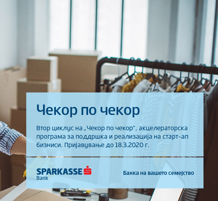„Шпаркасе Банка Македонија“ го започнува вториот циклус од програмата „Чекор по чекор“, наменета за поддршка и развивање старт-ап бизниси во Република Северна Македонија. Програмата е воведена со потпишувањето на спогодбата