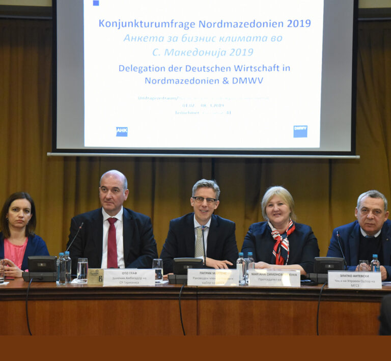 На денешната конференција за медиуми беа претставени резултатите од 14 анкета за деловната клима во Северна Македонија 2018/2019 спроведена во месец февруари 2019 помеѓу компаниите членови на Македонско-Германското стопанско здружение