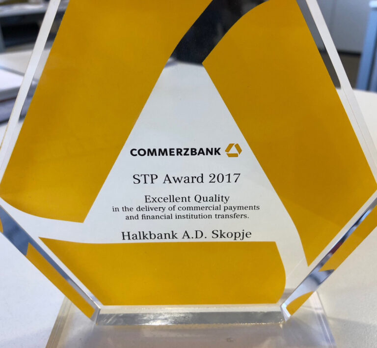 Халкбанк АД Скопје е добитник на наградата “STP Excellence Award “ за 2017 од Commerzbank како признание за квалитет и брзина во процесирање на меѓународните плаќања. Оваа награда е особено