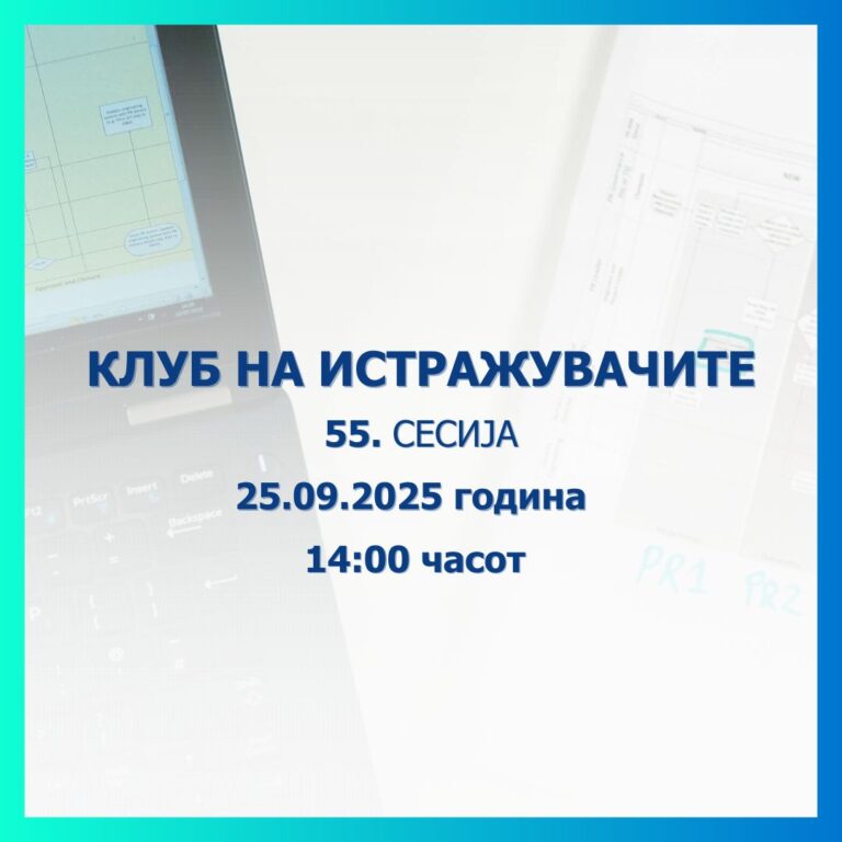 На 25 септември 2025 година (четврток), со почеток во 14 часот, ќе се одржи 55. сесија на Клубот на истражувачите во просториите на Народната банка, која со свое обраќање ќе