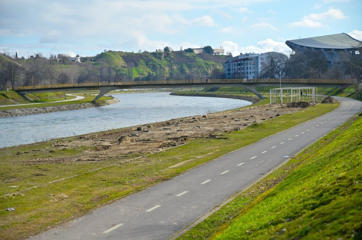 Со засилено темпо продолжуваат активностите за уредување на кејот на реката Вардар, проект кој Град Скопје го спроведува со цел создавање современ и функционален јавен простор достапен за сите граѓани,