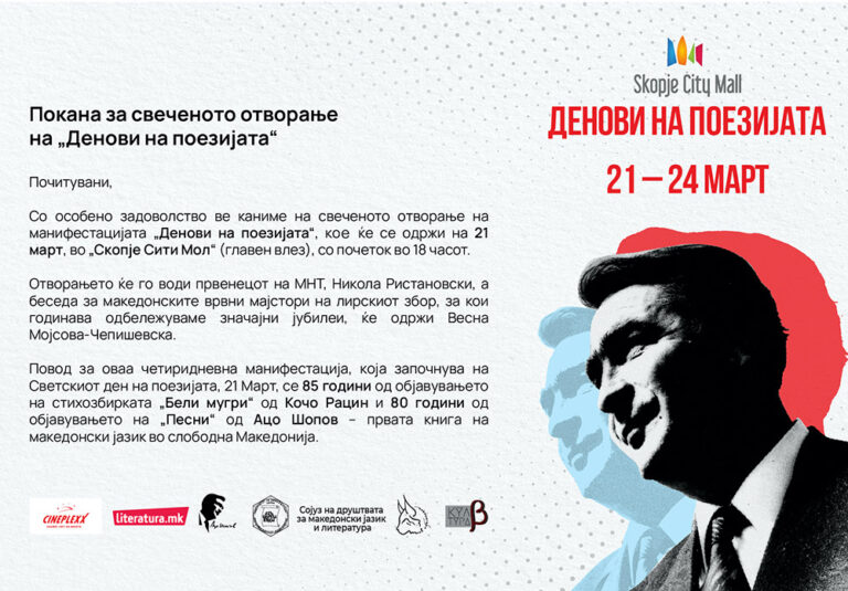 „Денови на поезијата“ – свечено отворање во „Скопје Сити Мол“, 21 март, 18 часот