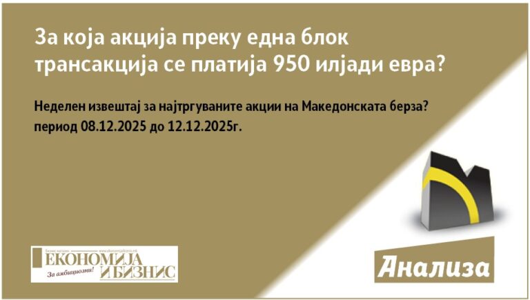 Неделен извештај за најтргуваните акции на Македонската берза? период 08.12.2025 до 12.12.2025г Минатата недела, во периодот од 08.12.2025 – 12.12.2025г година на Македонската берза на хартии од вредност на официјалниот