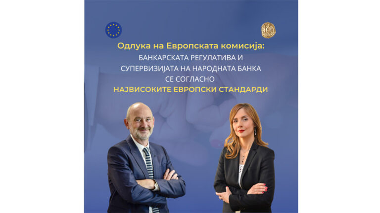 Одлука на ЕК: Банкарската регулатива и супервизијата којашто ја спроведува Народната банка е во согласност со највисоките европски стандарди