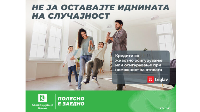 Комерцијална банка понуди потрошувачки и станбени кредити со уште поповолни услови – обезбедени со полиса за животно осигурување или за осигурување при неможност за отплата од осигурителните компании на групацијата