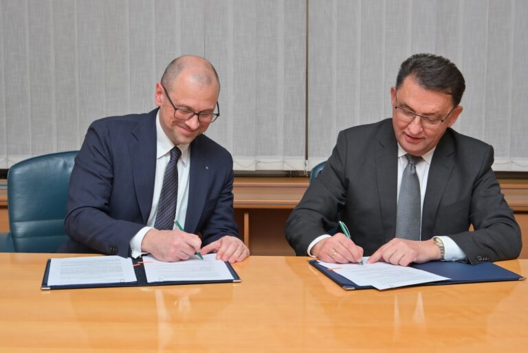 Гувернерот на Народната банка, д-р Трајко Славески, од една страна и претседателот на Управниот одбор на НЛБ д.д. Љубљана, Блаж Бродњак и членот на Управниот одбор на НЛБ д.д. Љубљана,