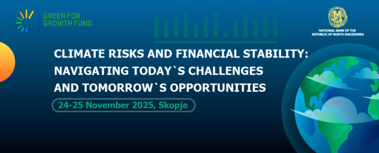 Народната банка и Фондот за зелен развој (GGF − Green for Growth Fund) организираат Конференција за климатските ризици и финансиската стабилност, којашто ќе се одржи на 25 ноември во Скопје.
