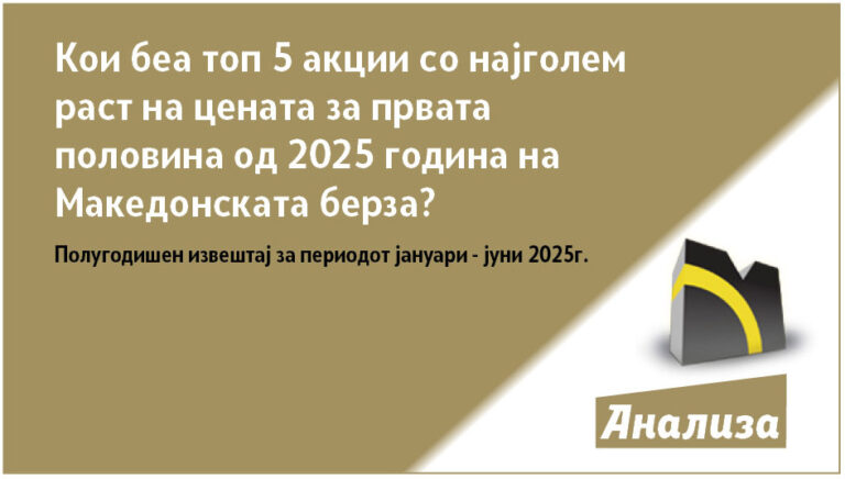 Кои беа топ 5 акции со најголем раст на цената за првата половина од 2025 година на Македонската берза?