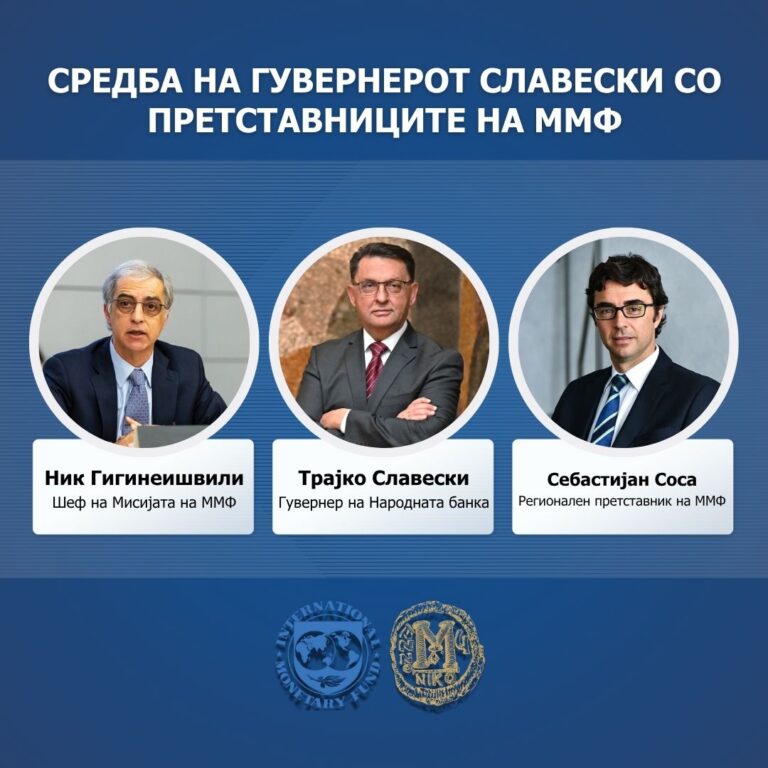 Средба на гувернерот Славески со ММФ: Народната банка е професионална, независна и кредибилна институција којашто придонесува за стабилноста